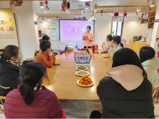 近日,无锡市新吴区新安街道宁湖社区举办“青宁她力量”社区创新治理项目结项仪式,社区全体工作人员、益起爱公益团队和妇女代表等20余人参加活动。