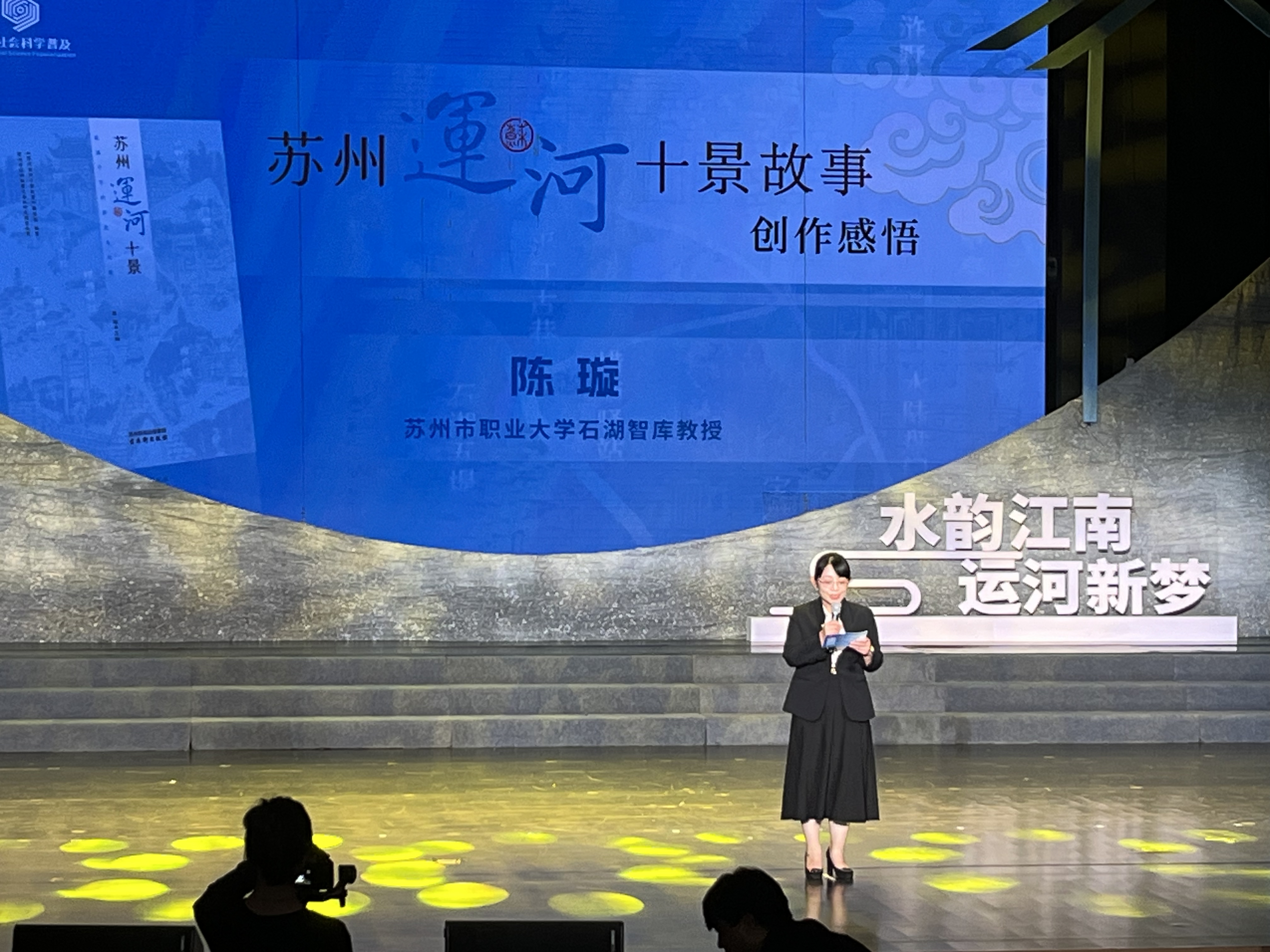 为更加生动讲好苏州的运河故事,2021年,由苏州市委宣传部、市社科联指导,苏州市职业大学石湖智库团队负责编纂了《苏州运河十景》一书。时隔三年,石湖智库又编纂出版了《苏州运河十景故事》。“在天堂苏州,有一条长长的运河;运河的两岸,人文鼎盛、经济领跑、山水俊秀;这条美丽的长河,在苏州纵贯华夏文明的尺度上熠熠生辉。”陈璇在分享中介绍道,回望公元前486年那第一锹撬动运河修筑的土壤,运河“连通万物、运济天下”的使命就已经被定格。商业繁盛,更带来人文鼎盛,这正是习近平总书记提到的“文化很发达的地方,经济照样走在前面。可以研究一下这里面的人文经济学。”最好注脚。(苏报融媒记者 朱琦 文/摄/视频)