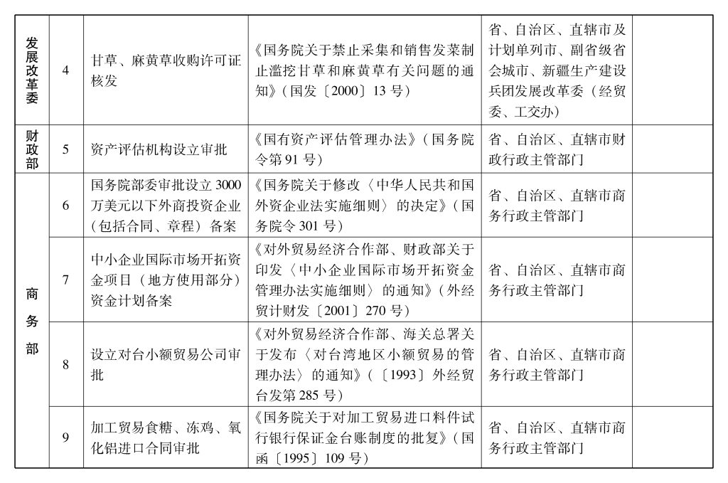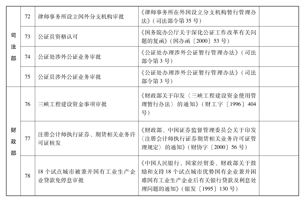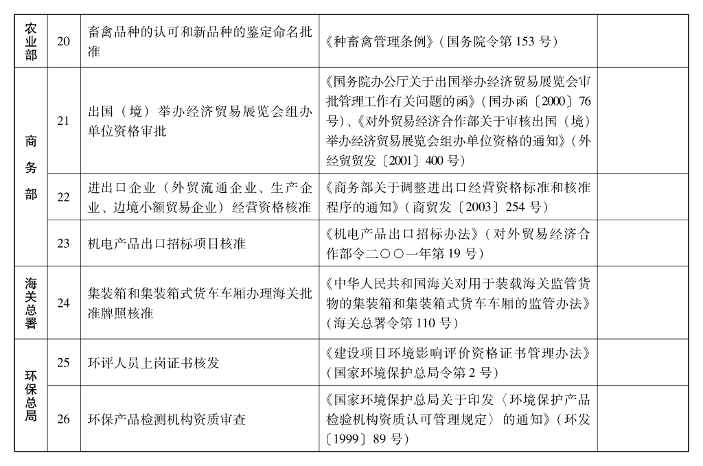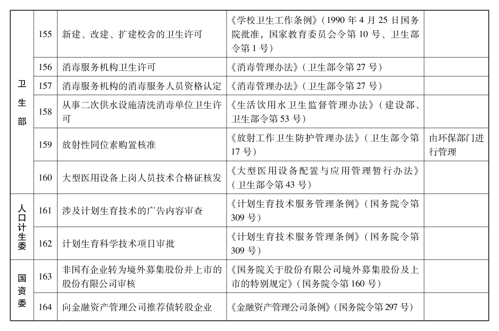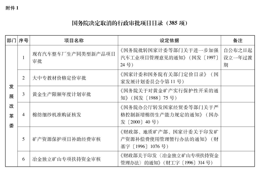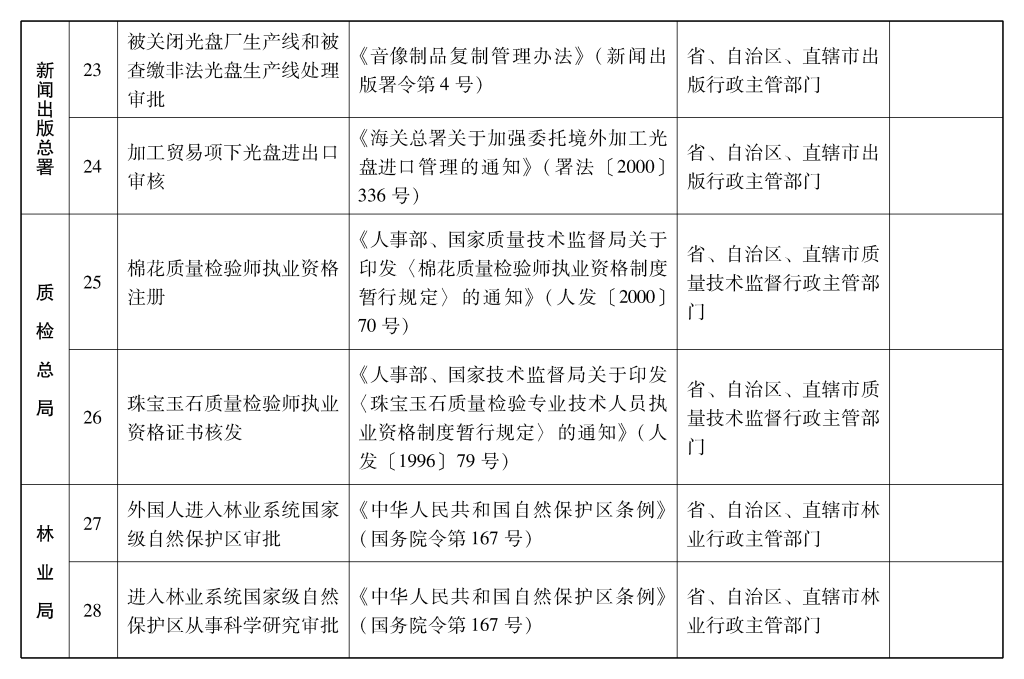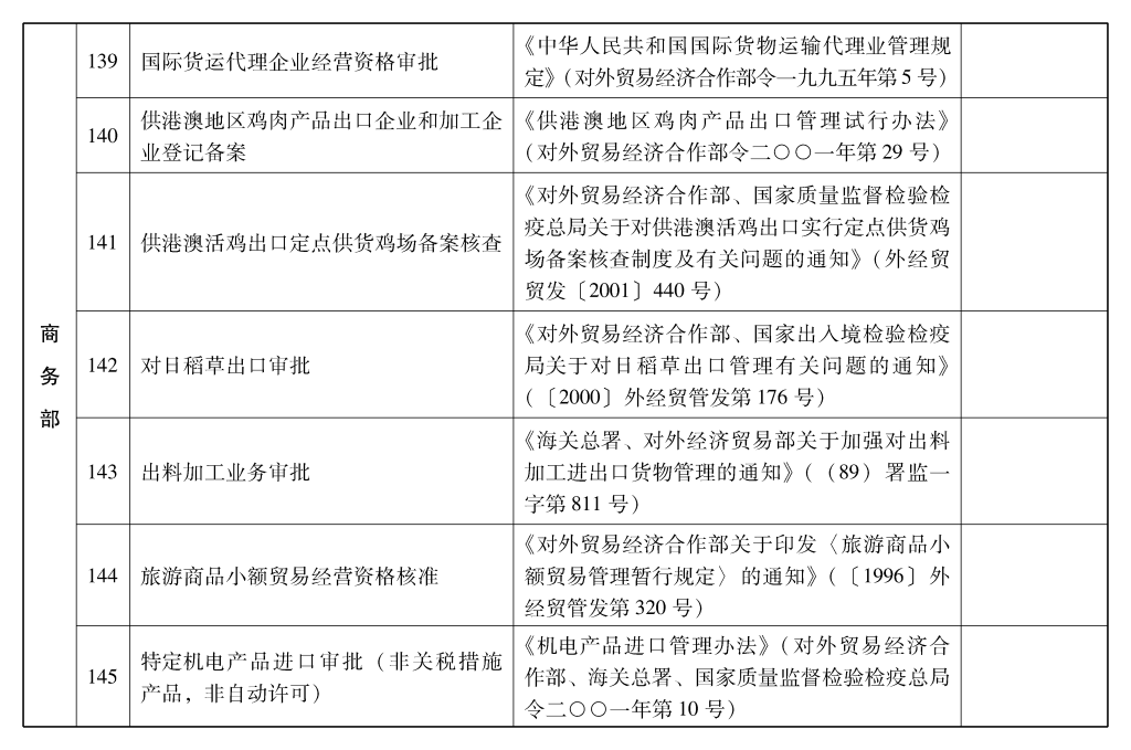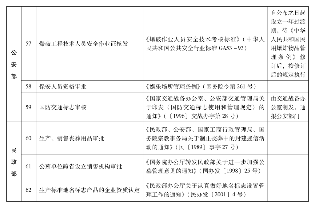 2002年10月和2003年2月国务院决定共取消和调整1300项行政审批项目后,国务院行政审批制度改革工作领导小组对国务院部门行政审批项目又进行了全面清理。经严格审核论证,国务院决定再次取消和调整495项行政审批项目。其中,取消的行政审批项目409项;改变管理方式,不再作为行政审批,由行业组织或中介机构自律管理的39项;下放管理层级的47项。在取消和调整的行政审批项目中有25项属于涉密事项,按规定另行通知。