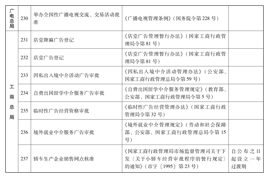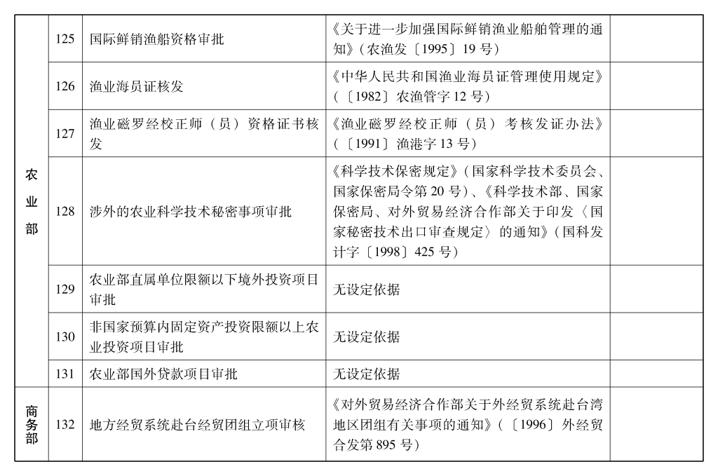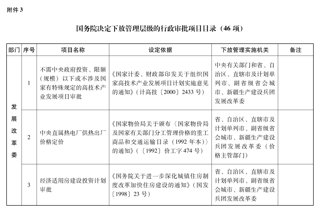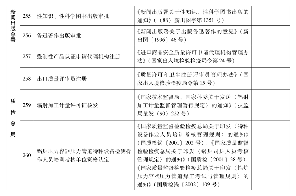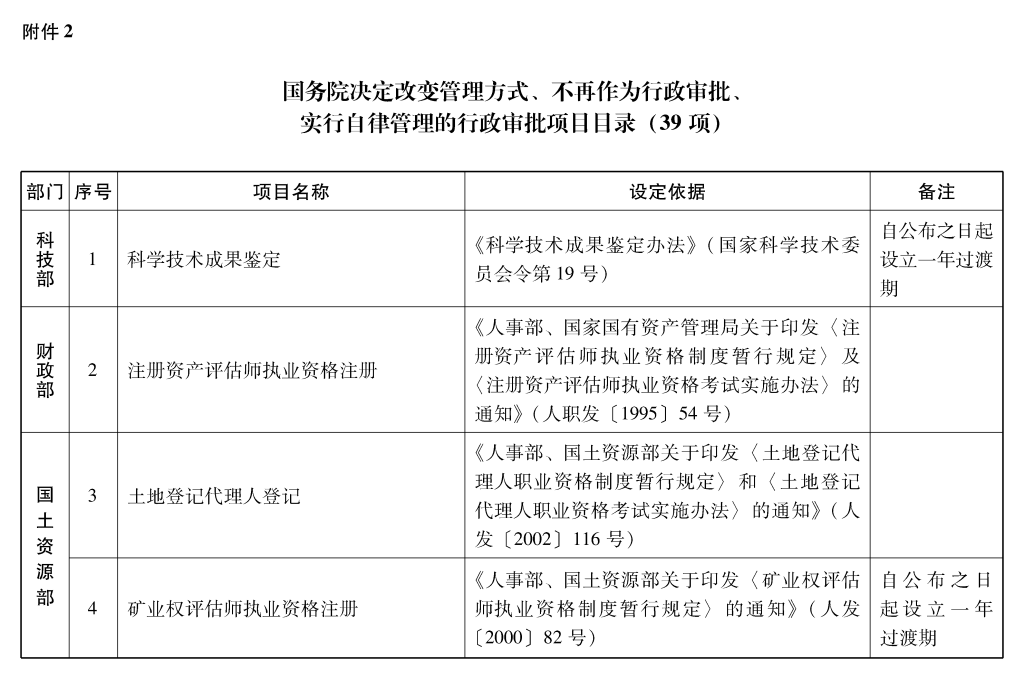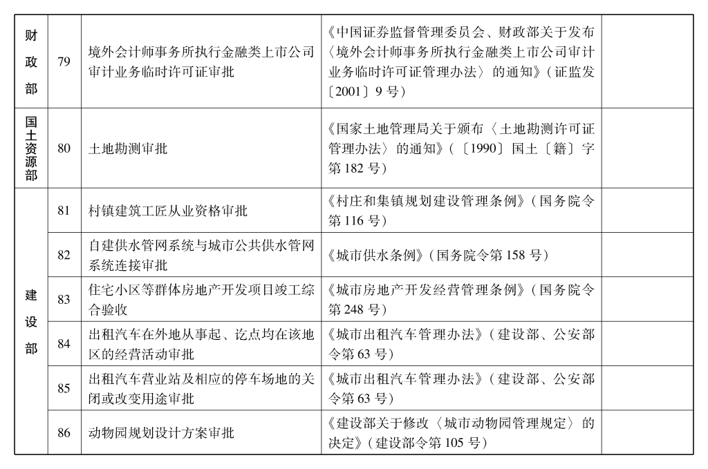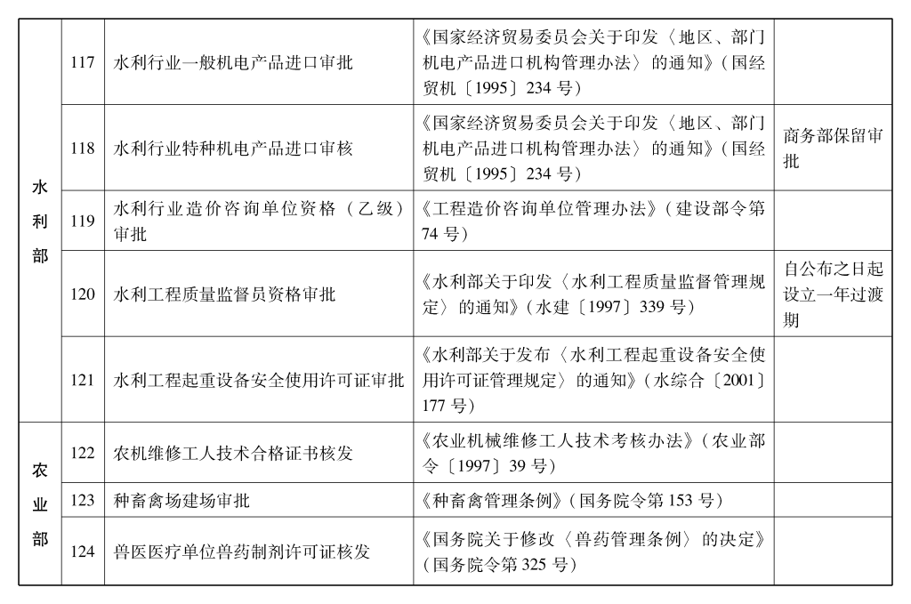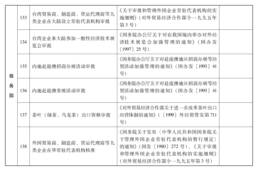 2002年10月和2003年2月国务院决定共取消和调整1300项行政审批项目后,国务院行政审批制度改革工作领导小组对国务院部门行政审批项目又进行了全面清理。经严格审核论证,国务院决定再次取消和调整495项行政审批项目。其中,取消的行政审批项目409项;改变管理方式,不再作为行政审批,由行业组织或中介机构自律管理的39项;下放管理层级的47项。在取消和调整的行政审批项目中有25项属于涉密事项,按规定另行通知。