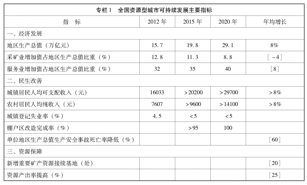 到2020年,资源枯竭城市历史遗留问题基本解决,可持续发展能力显著增强,转型任务基本完成。资源富集地区资源开发与经济社会发展、生态环境保护相协调的格局基本形成。转变经济发展方式取得实质性进展,建立健全促进资源型城市可持续发展的长效机制。