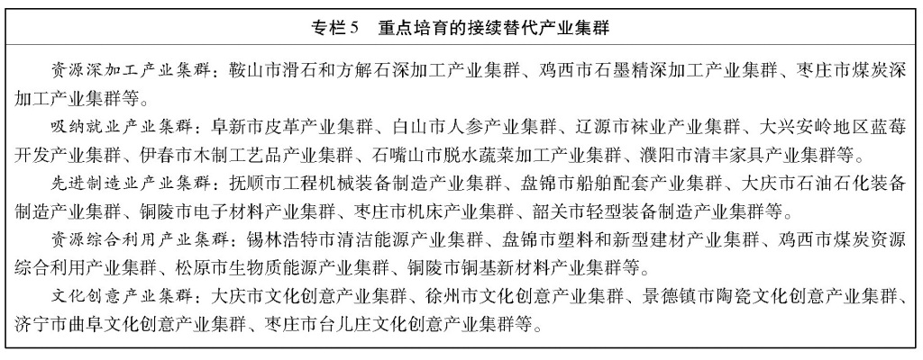 加强规划统筹,优化产业布局,引导产业向重点园区和集聚区集中,形成集约化、特色化的产业发展格局。制定严格的行业、产业分类用地标准,提高土地利用水平。依托原有基础,改造和建设一批特色鲜明的专业化产业园区和集聚区,加强交通、供水、供电等配套基础设施建设,搭建产业集聚发展的重要载体和平台。以科技含量、环保水平、投资强度、吸纳就业能力为标准,积极培育和引进一批龙头骨干企业。完善产业链条,提升产业配套能力,促进关联产业协同发展,打造各具特色的产业集群。到2020年,创建10个接续替代产业示范城市,培育50个接续替代产业集群,改造建设100个接续替代产业园区和集聚区。