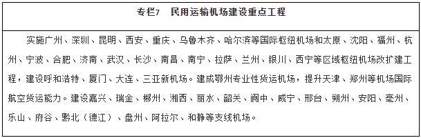 扩大航空网络覆盖。推动区域机场群协同发展,建设京津冀、长三角、粤港澳大湾区、成渝等世界级机场群。适时启动能力紧张枢纽机场改扩建工程,强化枢纽机场综合保障能力。合理加密机场布局,稳步建设支线机场和专业性货运枢纽机场,提升综合性机场货运能力和利用率。有序推进通用机场规划建设,构建区域短途运输网络,探索通用航空与低空旅游、应急救援、医疗救护、警务航空等融合发展。优化航路航线网络,加强军民航空管基础设施建设,推广应用空管新技术。