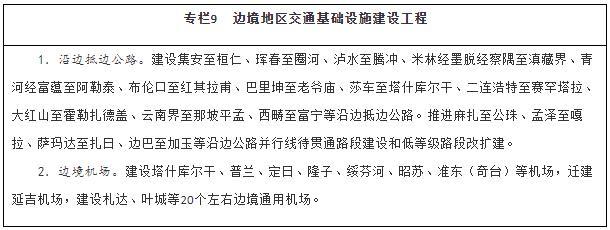 服务沿边城镇体系建设,以公路、机场为重点,大力改善边境地区交通出行条件,提升边境城镇人口集聚能力。统筹推进边境地区国省干线公路、农村公路等建设,全面完善国道干线主骨架,推进沿边公路并行线建设和低等级公路提质改造,加快抵边公路建设,尽快形成层次清晰、结构合理的沿边公路网。稳步推进边境地区机场建设,构建多层级航空网,扩大航空运输服务覆盖面。补强同江、二连浩特、阿拉山口、霍尔果斯、瑞丽、磨憨等口岸后方铁路通道能力。加强抵边自然村邮政设施建设,实现邮政服务普遍覆盖。