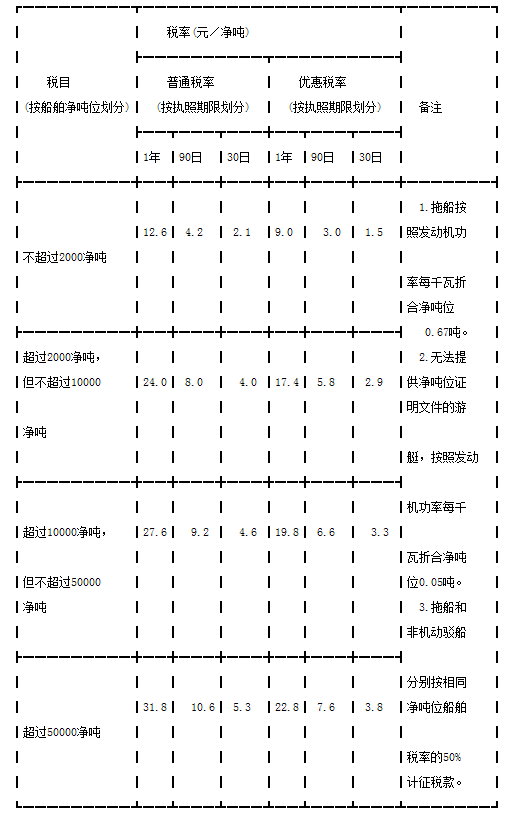 第四条吨税按照船舶净吨位和吨税执照期限征收。