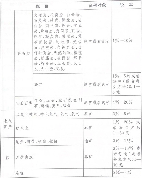 第二条资源税的税目、税率,依照《税目税率表》执行。