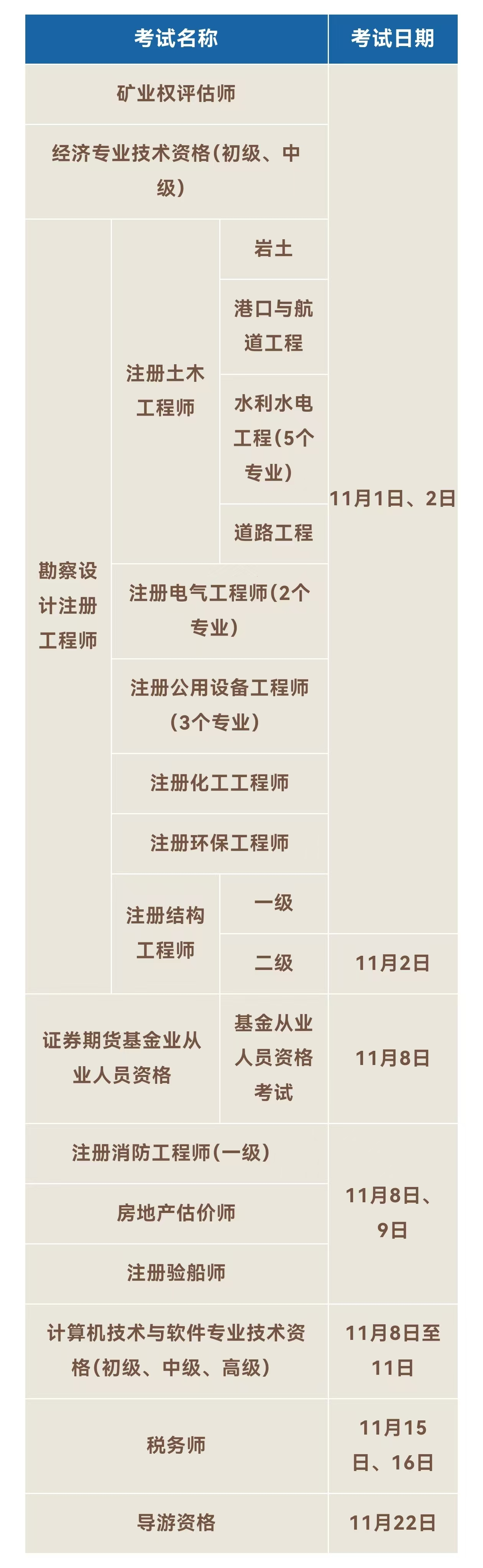 3.别错过!11月有这些考试:要考证的小伙伴看过来,11月专业技术人员职业资格考试时间表来啦!(人力资源和社会保障部)