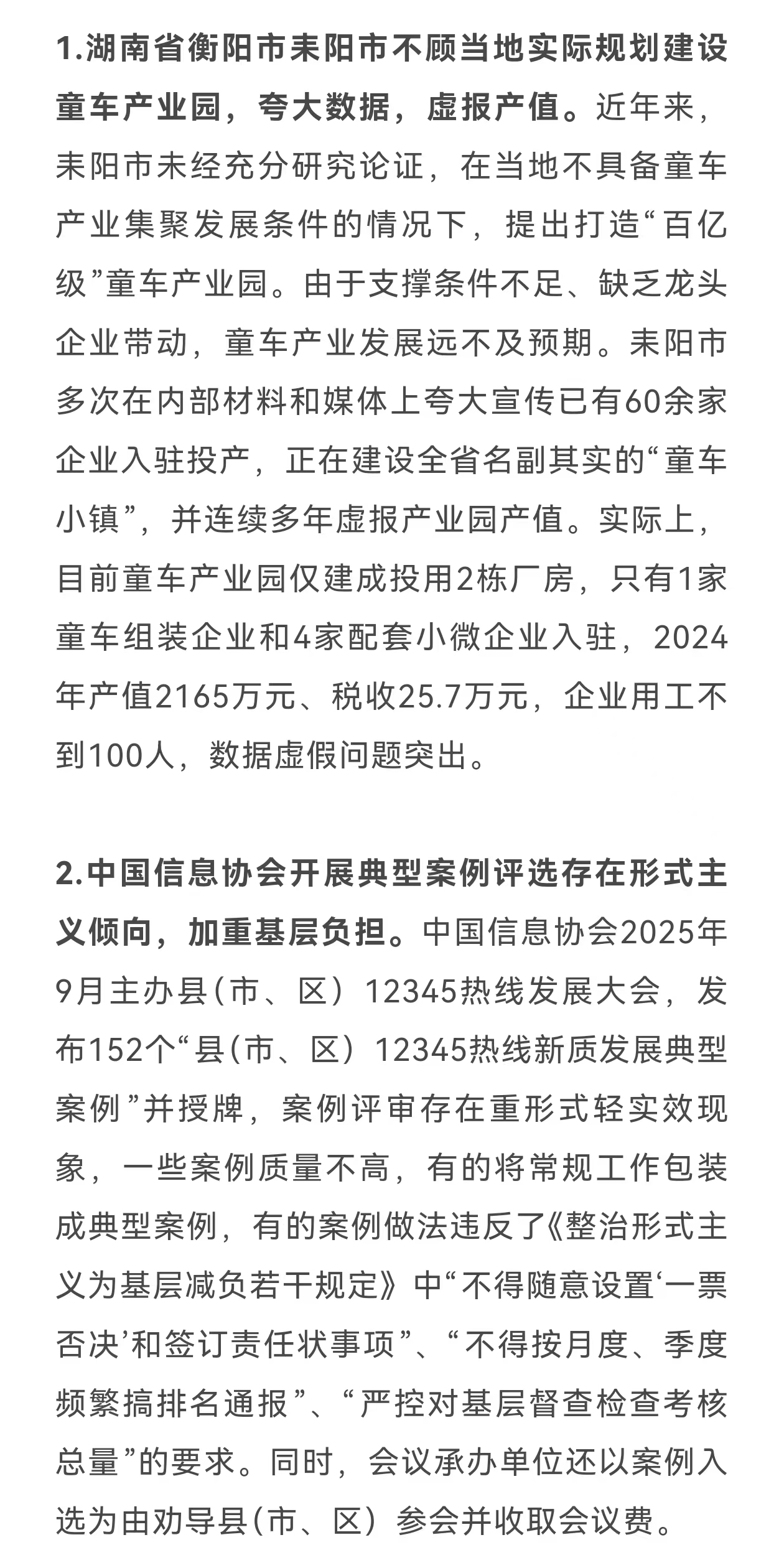 1.两起整治形式主义为基层减负典型问题,被公开通报:日前,中央层面整治形式主义为基层减负专项工作机制办公室会同中央纪委办公厅对2起整治形式主义为基层减负典型问题进行通报。具体如下↓(新华网)