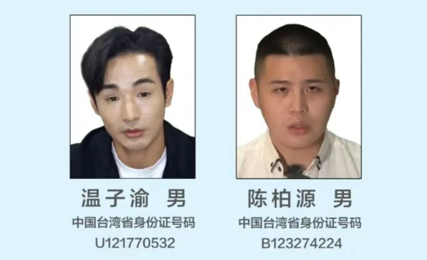 公安机关悬赏征集台湾网红温子渝、陈柏源违法犯罪线索