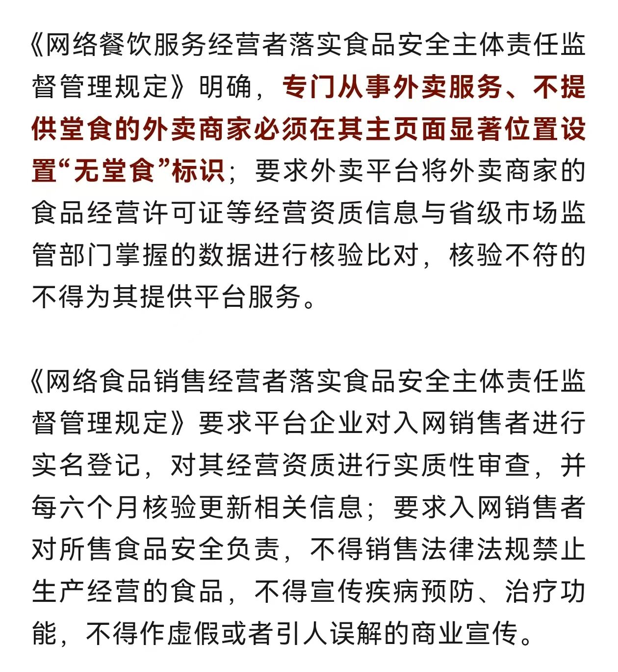 2.外卖和网售食品重磅新规来了:为压实网络经营主体责任,市场监管总局近期聚焦网络餐饮与食品销售制定两项规定:《网络餐饮服务经营者落实食品安全主体责任监督管理规定》和《网络食品销售经营者落实食品安全主体责任监督管理规定》。如下↓(新华社)