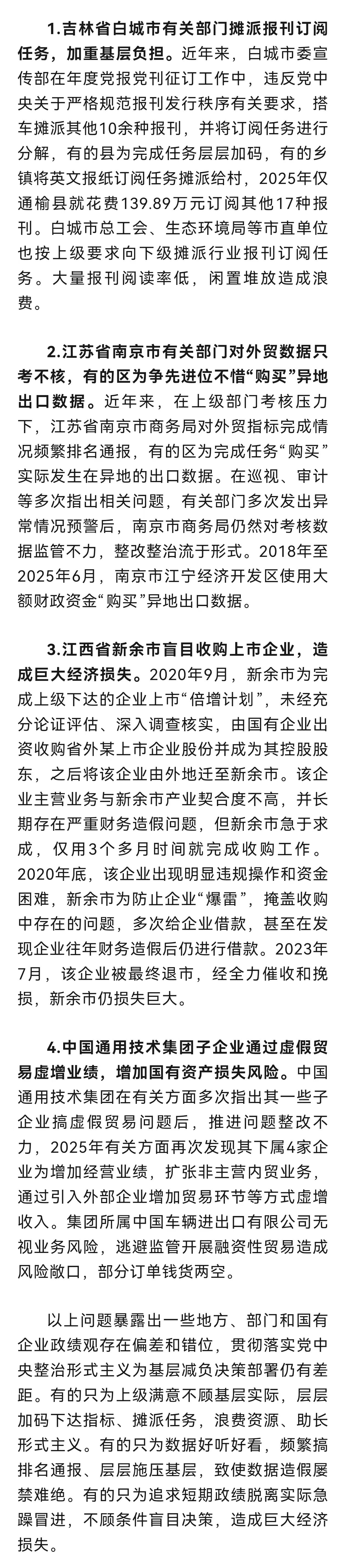 1.四起整治形式主义为基层减负典型问题,公开通报:日前,中央层面整治形式主义为基层减负专项工作机制办公室会同中央纪委办公厅对4起整治形式主义为基层减负典型问题进行通报。具体如下↓(人民日报)
