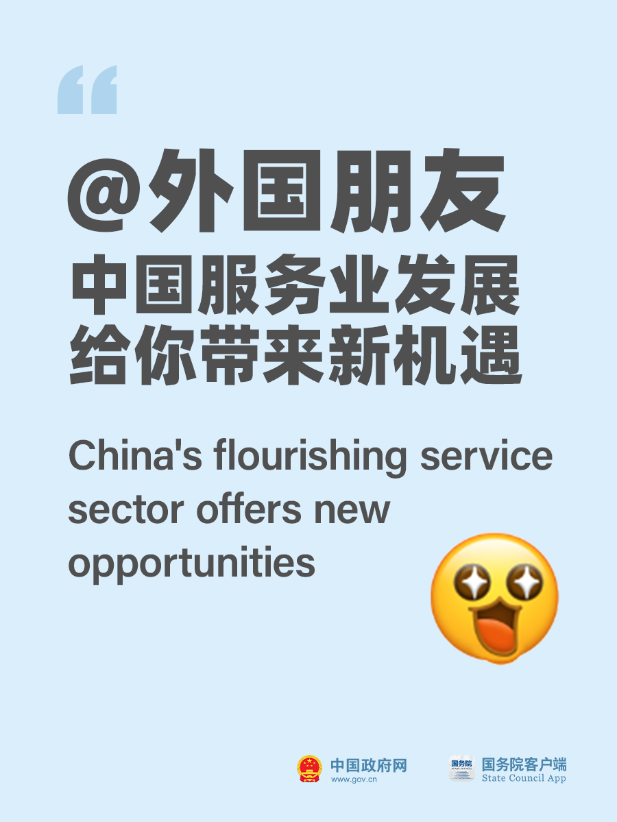 2.来中国的理由再+1:外国朋友,中国服务业发展给你带来新机遇,一起了解↓(中国政府网)
