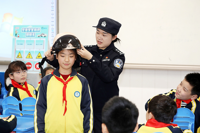 11月24日,在“全国交通安全日”来临之际,宝应县公安局组织民警走进辖区中小学,开展“交通安全知识进校园”宣传活动,增强学生的安全意识。□通讯员 沈冬兵 摄