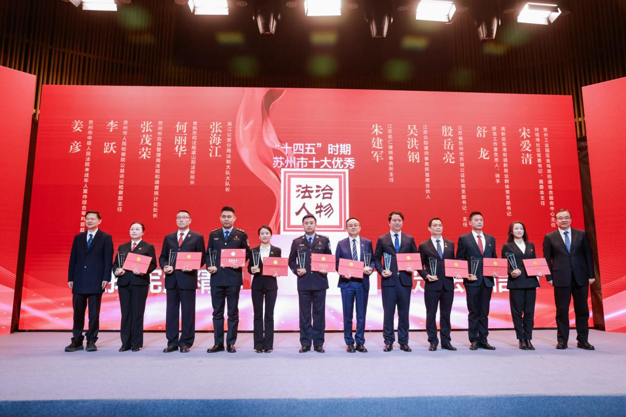 活动现场还发布“十四五”期间苏州市“十大优秀法治人物”“十大法治建设典型案例”,获奖代表和单位接受访谈,讲述参与法治苏州建设的生动故事。