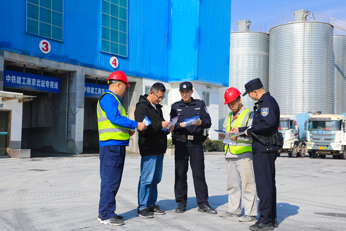 近日,南京市公安局六合分局机场派出所民警深入辖区企业,开展安全生产宣讲,还检查了搅拌车等内部运输车辆的安全管理状况,助力企业夯实安全基础,防范各类风险隐患。 □通讯员 何庆钰 摄
