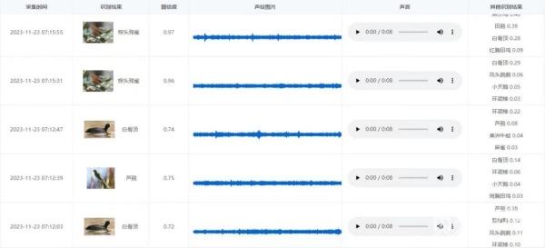 莺鸣雀和、黄莺出谷……不同鸟类通常具有不同的鸣叫声。为了更好保护这些自然朋友,江苏省环境监测中心在白马湖湿地试点安装鸟类声纹测试设备,两个多月来已捕捉到数千条有效鸟类鸣叫数据,通过算法比对分析,成功识别出强脚树莺、黄眉柳莺等“不常被看见”的鸟类。江苏省环境监测中心生物部负责人蔡琨介绍:“前端的采集通俗点讲就是个录音机,但设备远远比录音机复杂,方圆100米范围内的声音都能采集到,然后会把实时采集到的音频返回来,在系统内部依据人工智能的算法跟我们库里采集到的进行比对,识别出声音来自哪一种鸟。”