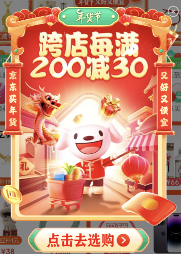 新江苏记者在不少电商平台看到,平台已在图标处显著标识“年货节”字样,进入应用程序后,就能看到相关年货专区,还上线了“满200减30”等金额不等的优惠券。