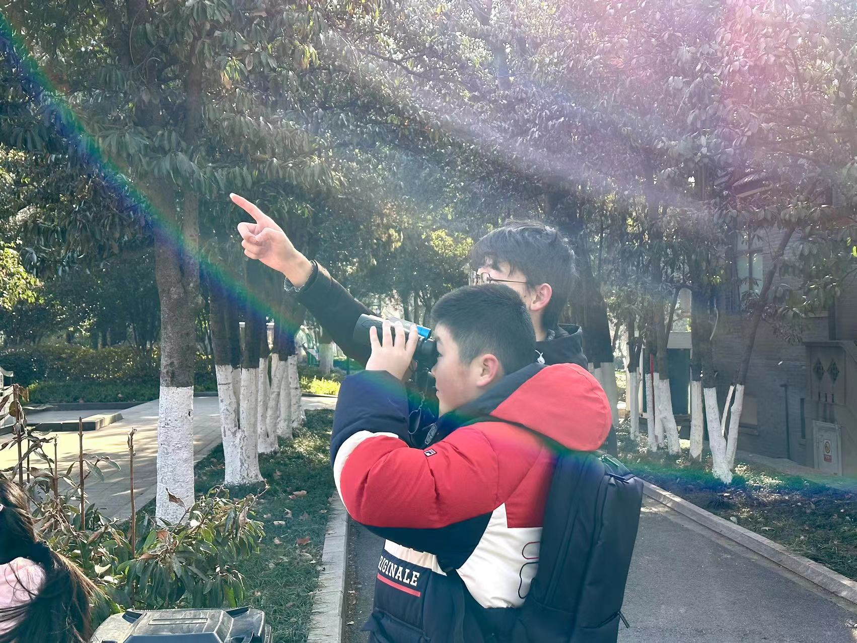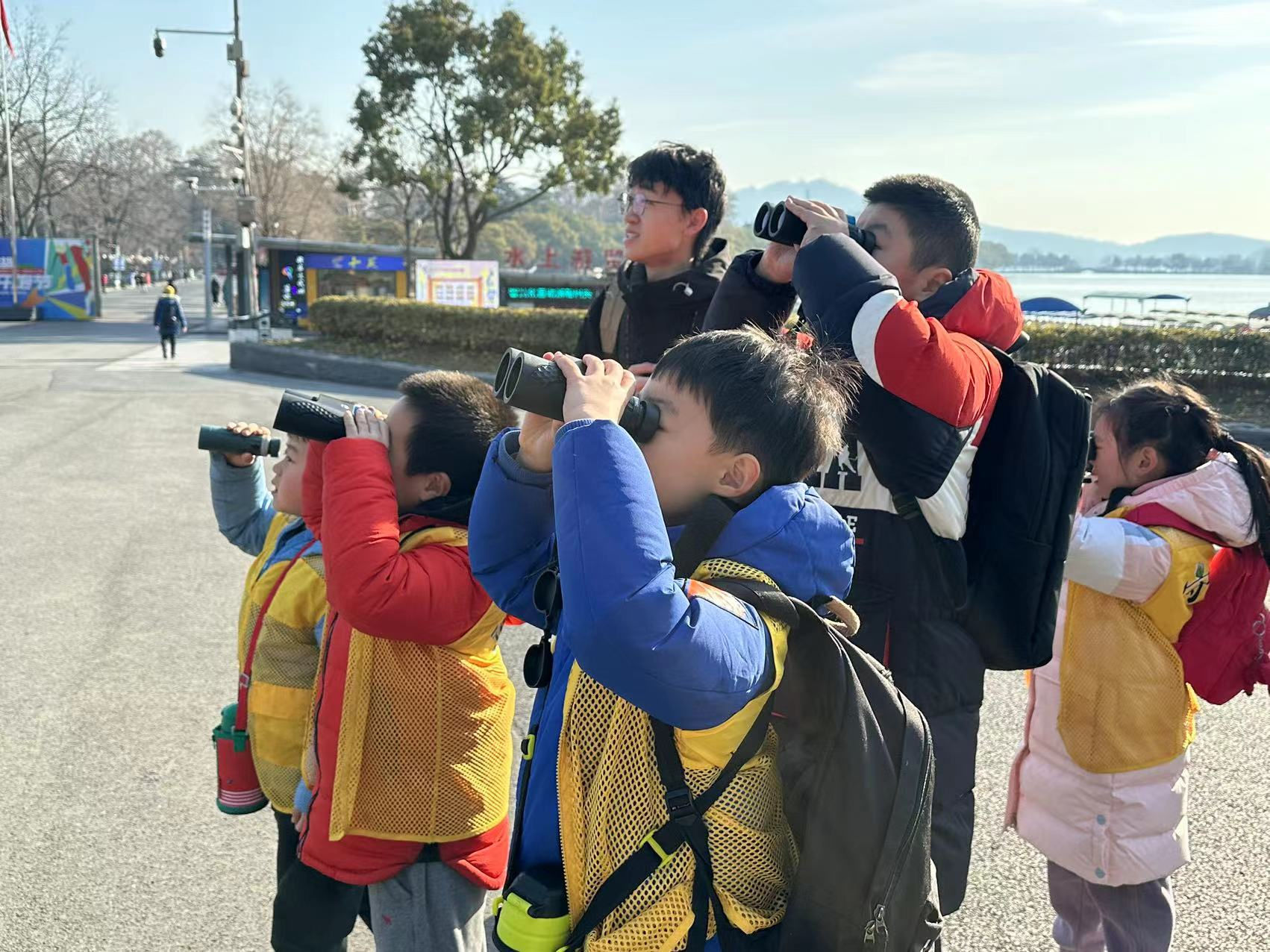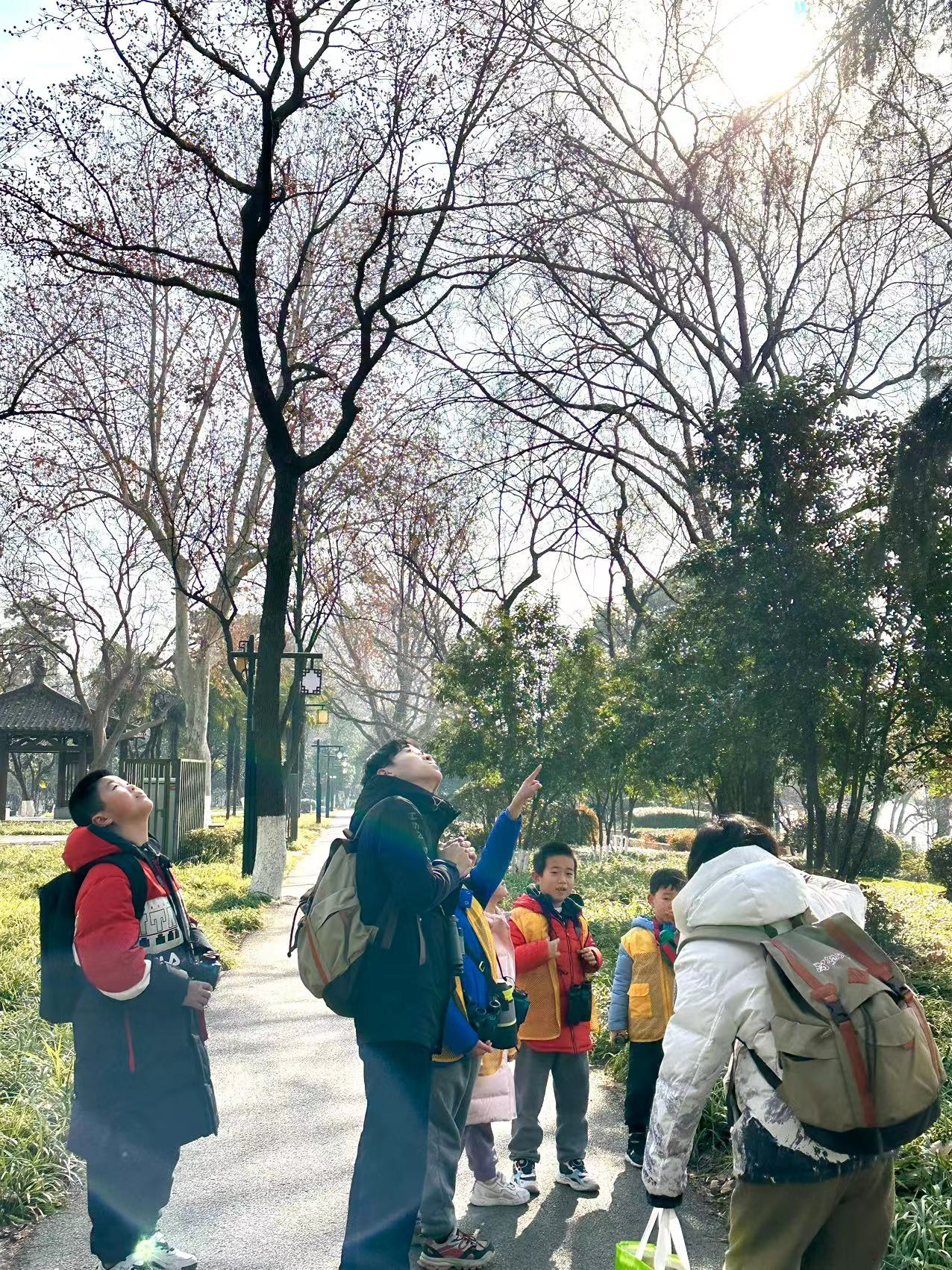 1月24日上午9点,背着书包,拿着望远镜,一群孩子在老师的带领下走进玄武湖公园,开启了当天的自然课堂——观鸟。