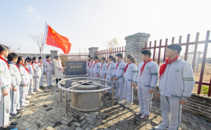 近日,在江苏省宿迁市泗洪县孙园镇“爱民井”现场,泗洪县孙园学校少先队总辅导员石雷深情地向学生讲述“爱民井”的红色故事。近年来,泗洪县孙园学校秉持“传承红色基因 浸润学生心灵”的教育理念,以“追寻红色印记”为主题,通过在校园中营造红色氛围、在学科教学中渗透红色元素、在实践中浸润红色教育等方式,让红色基因融入学生血液、根植学生心田。