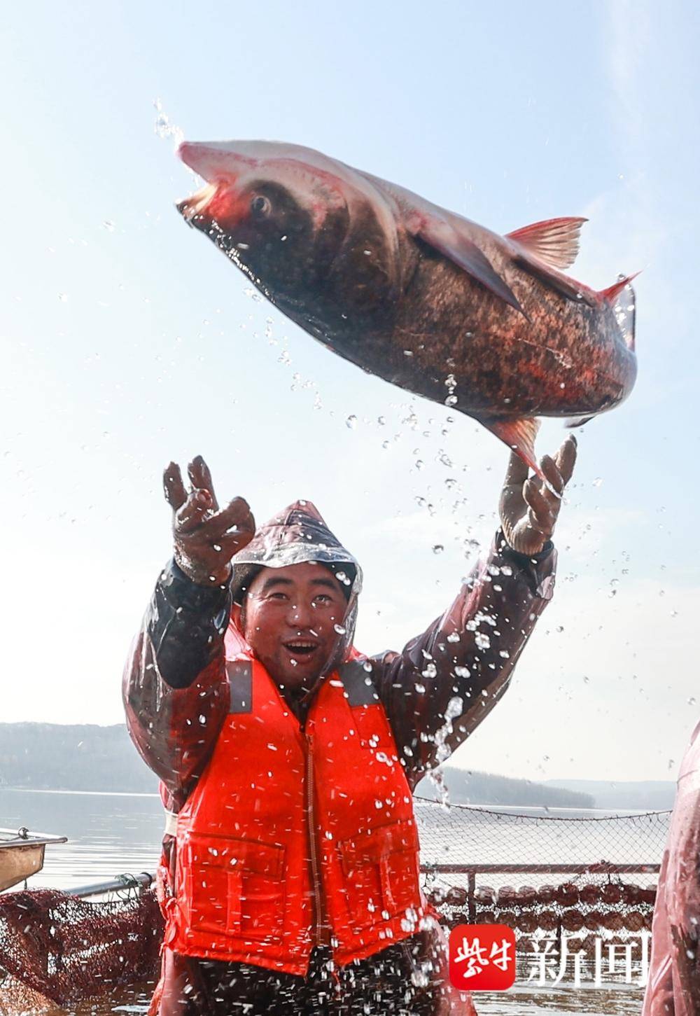 在龙王山水库,渔民们站在船上,分工协作、相互配合着将渔网向岸边移动,随着网口慢慢收拢,第一网鱼顺利起网,肥美的白鲢、花鲢等破水而出,在渔网里鲜活跳跃,溅出串串水花,一条条大鱼承载着渔民们丰收的喜悦。撑杆、围网、起捕、分拣、称重、装车,所有步骤一气呵成,大家动作迅速、井井有条。