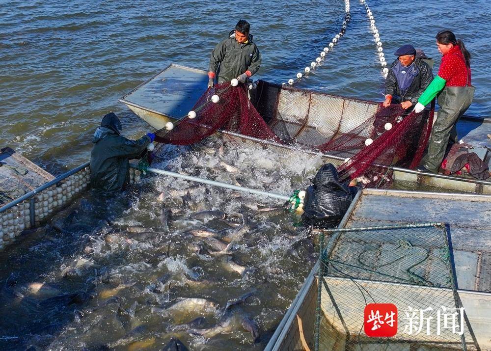 盱眙县天源河湖开发有限公司水库管理员彭家国说:“现在是一年一度的冬捕,预计2024年全年产量超100万斤,主要销往东北、北京、广州等地。”