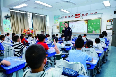 南京市公安局奥体警务站的民警走进辖区小学,为学生们带来一场生动的安全教育课,预防校园欺凌事件发生。 通讯员 国武 南京日报/紫金山新闻记者 段仁虎 摄