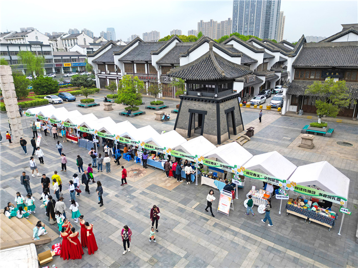 4月13日,常州武进区第三届“春风有约”悦读季如约开幕,全区各镇(街道)及区图书馆、文化馆、博物馆等近20个摊位吸引众多市民。各式各样的非遗展示、装帧精美的文学经典、可爱灵动的手工艺品、充满巧思的文创周边……集中展示全区特色阅读品牌,让市集蒸腾起“文化的热气”。