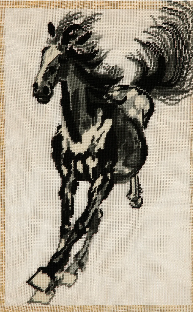 4月30日,无锡博物院推出“绣里乾坤——绒绣大师朱静芬与《奔马图》”。绒绣,又称为彩帷绒绣,是一种用彩色羊绒线在特制网眼麻布上绣出各种画面和图案的刺绣工艺。无锡绒绣是无锡刺绣的一个重要品种,在无锡绒绣发展历程中,涌现出一批著名的绒绣艺人。此件绣品以徐悲鸿的画作为底本,朱静芬以针和绒线重新建构他的奔马,绣里藏乾坤,绒马亦奔腾。此次展览,还展出部分相关物品,让锡城市民了解这门游走于针尖下的艺术。