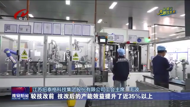 在江苏纽泰格科技集团股份有限公司7号恒温车间里,4条自动化装配线正在全力运转。据了解,该装配线主要生产特斯拉汽车转向配套产品,导入自动化后,每条生产线可节省人力30余人。江苏纽泰格科技集团股份有限公司生产部自动化工程师赵年华说:“自从导入这条自动化设备以后,我们的产品品质得到了有效追溯,在客户端也赢得了很好的评价,对于我们在现场处理问题也有一个很好的依据。”江苏纽泰格科技集团股份有限公司工会主席毛波介绍说:“我们企业先后投入了近2亿元,完成了7条全自动装配生产线的技术改造,并投入使用,较技改前,技改后的产能效益提升了近35%以上,较好地完成了从人员密集型向智能效益型的转变。”