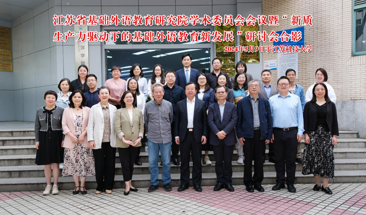 5月9日,江苏省基础外语教育研究院学术委员会会议暨“新质生产力驱动下的基础外语教育新发展”研讨会在镇江成功举办。此次研讨会由江苏省基础外语教育研究院主办,江苏科技大学外国语学院协办。江苏科技大学党委书记周南平,江苏省教育科学研究院中小学教学研究室主任、江苏省基础外语教育研究院理事长董洪亮,江苏省教育科学研究院原规划办主任彭钢,苏州大学外国语学院院长、江苏省基础外语教育研究院副理事长朱新福,江苏省教育科学研究院英语教研员、江苏省基础外语教育研究院副理事长魏惠,上海外语教育出版社基础教育部总经理、江苏省基础外语教育研究院秘书长黄新炎,以及研究院理事会其他成员、学术委员会部分委员和省内外英语教研员代表出席了本次会议。