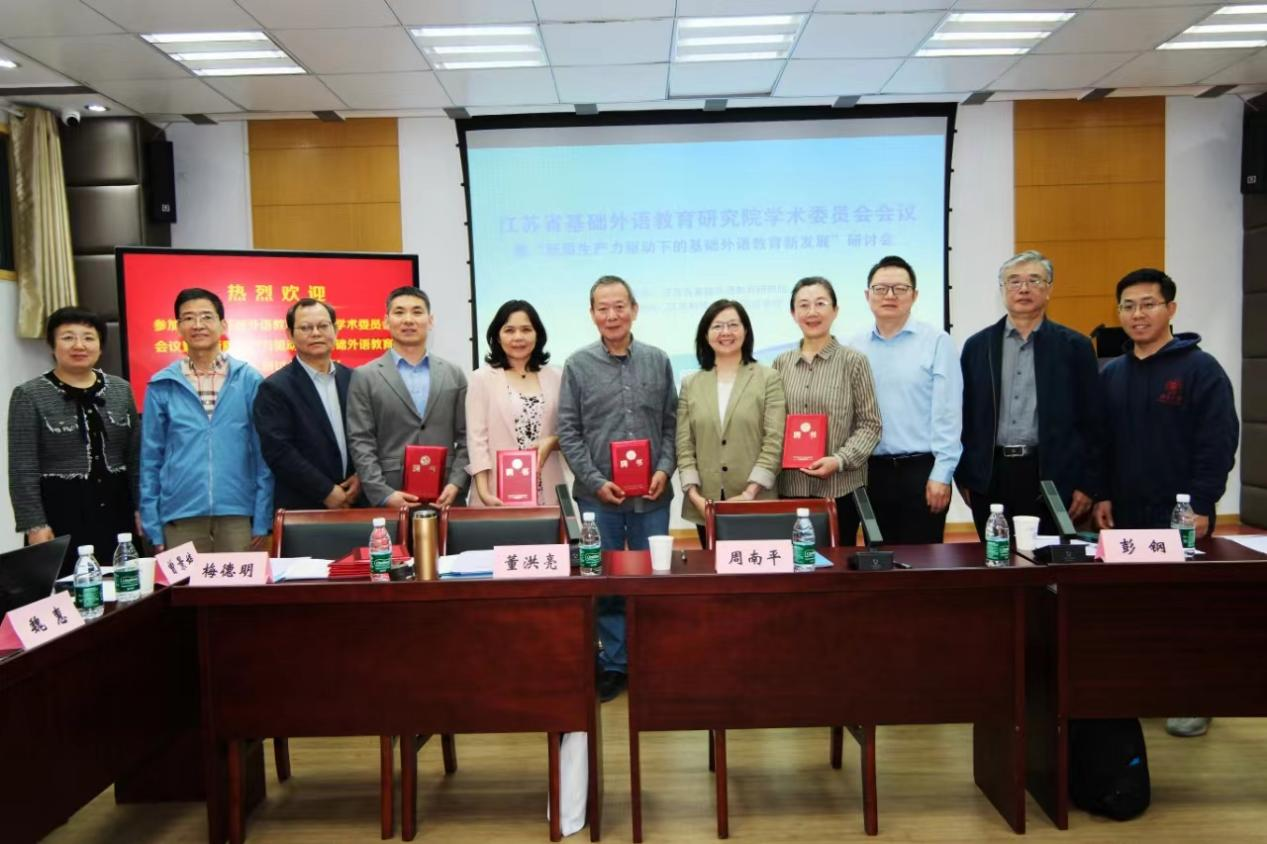 董洪亮理事长宣读了江苏省基础外语教育研究院学术委员会名单,并向彭钢、刘学惠、黄丽燕、孟祥春等学术委员会委员颁发了专家聘书。