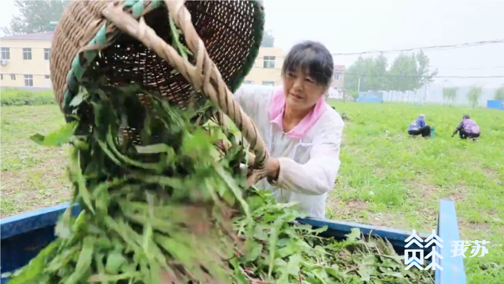 在临河镇沈圩村蒲公英种植基地,众多村民正忙着收割蒲公英,每天每人平均能采100斤左右。