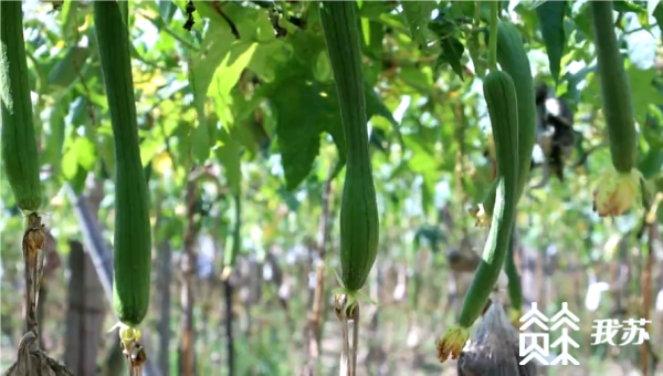 炎炎夏日,餐桌上一道清爽解腻的清炒丝瓜是不少市民喜爱的时鲜。眼下,在镇江句容市下蜀镇祝里村,丝瓜成了该村集体经济项目的“致富瓜”。种植基地里,一条条翠绿的丝瓜挂在藤上,工人们来回穿梭,挑选采摘成熟的丝瓜。