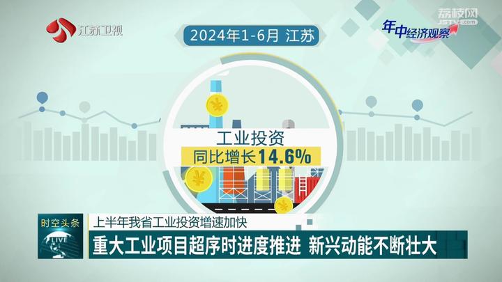 今年1-6月,全省上下着力扩大有效投资,积极推动大规模设备更新,工业投资质效明显提升。数据显示,上半年江苏工业投资同比增长14.6%,其中工业技改投资增速回升向好,上半年全省工业技改投资同比增长8.9%;制造业投资高位运行占比提高,全省制造业投资同比增长12.6%,高于去年同期2.5个百分点,占全部投资比重46.4%,较去年同期提高3.6个百分点,支撑作用明显。600个重大工业项目完成全年计划投资的61.8%,超序时进度11.8个百分点。无论出口还是投资,都折射出江苏先进制造加快发展、新质生产力带动效应增强。