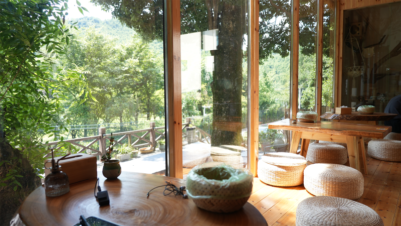 盛夏七月,烈日当空,浙江安吉余村,两株百年黄檀树绿意正浓。推开树荫下的竹篱门,走过一段砂石小道,便是俞佳慧的“黄檀树夏”民宿。